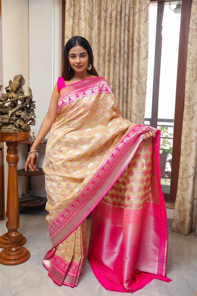 Also, feel the weave — high-quality silk will have a smooth texture, tight weaving, and neat finishing. Comfort is key too — make sure your saree drapes well, feels soft, and allows you to move freely. Finally, don’t forget to pair it with a beautiful blouse — contrast colors, rich embroidery, or minimalist looks can elevate your ensemble. Always buy from a trusted seller with guaranteed quality and transparency.