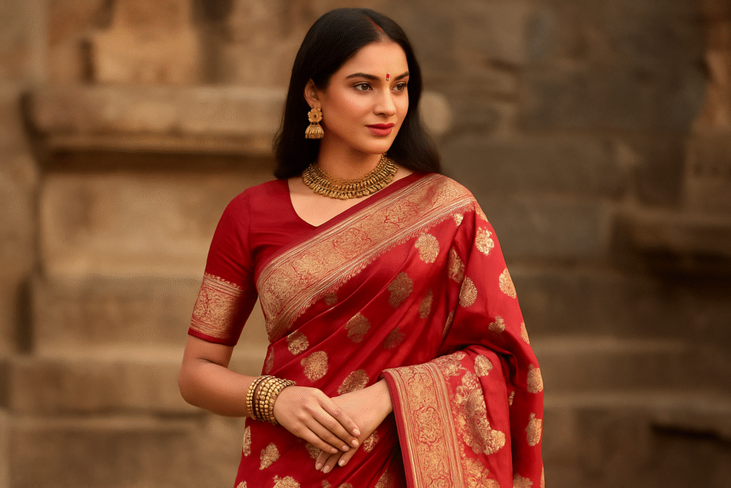 Next, match the saree with the occasion — go grand with Banarasi or Kanchipuram for weddings, opt for subtle Tussar for office wear, and pick light organza for everyday elegance. When it comes to color and design, choose bright hues for celebrations, pastels for daytime, traditional motifs for timeless appeal, and modern prints for a chic twist.
