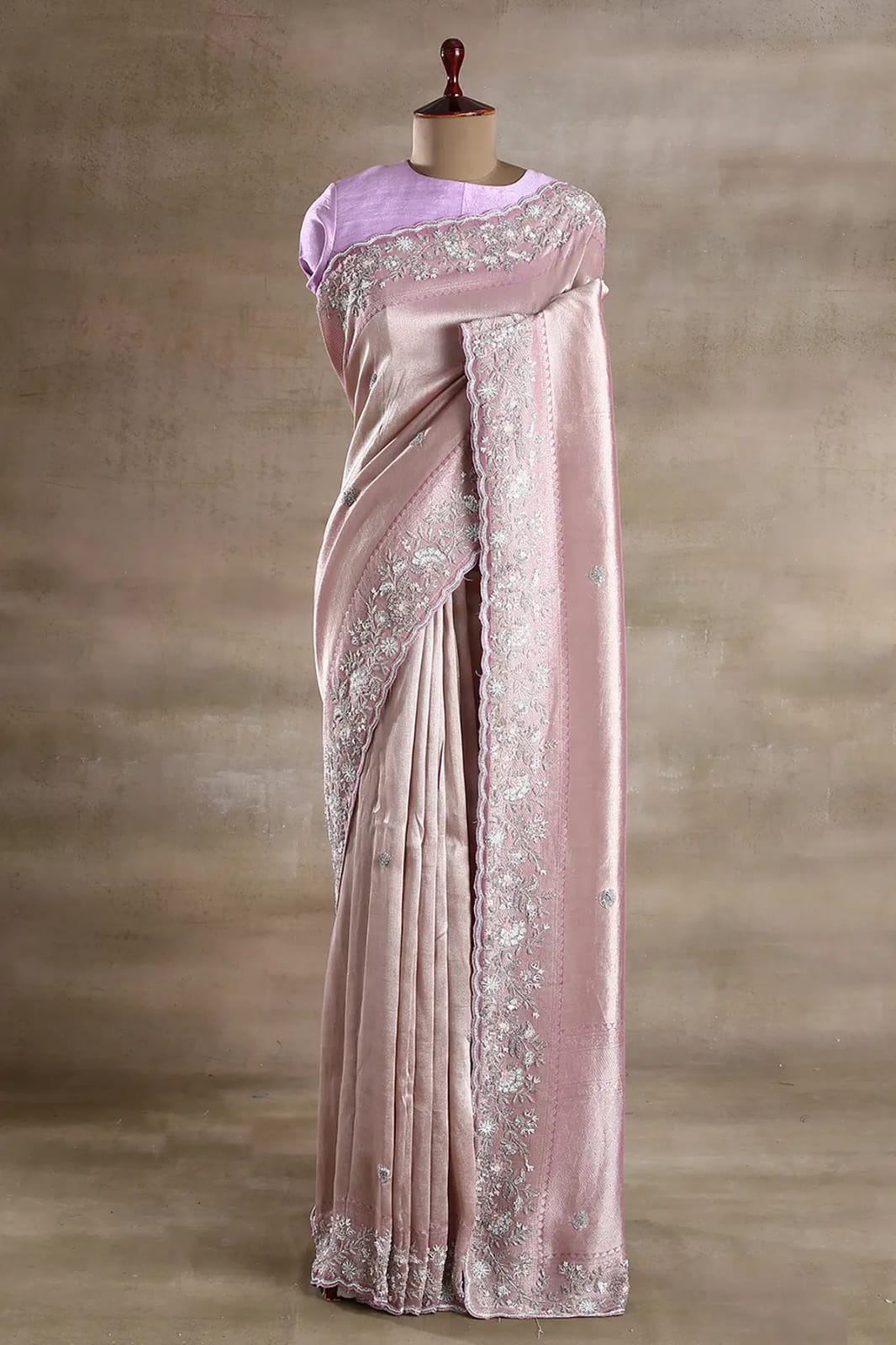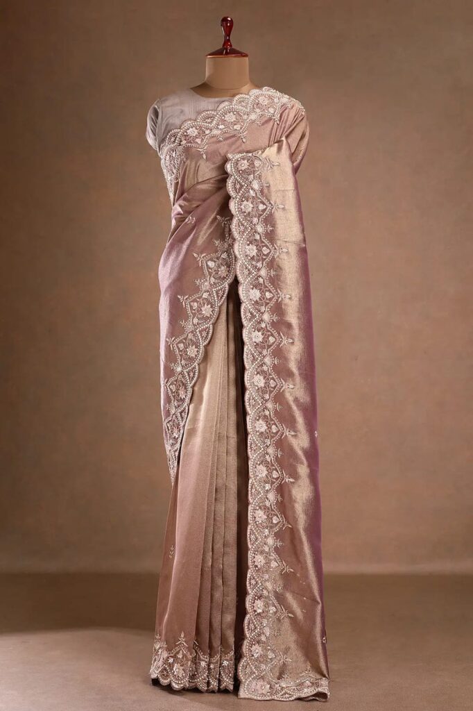 Elegant designer silk saree featuring intricate embroidery and zari detailing. Comes with an unstitched blouse piece, perfect for weddings, festive occasions, and special celebrations.