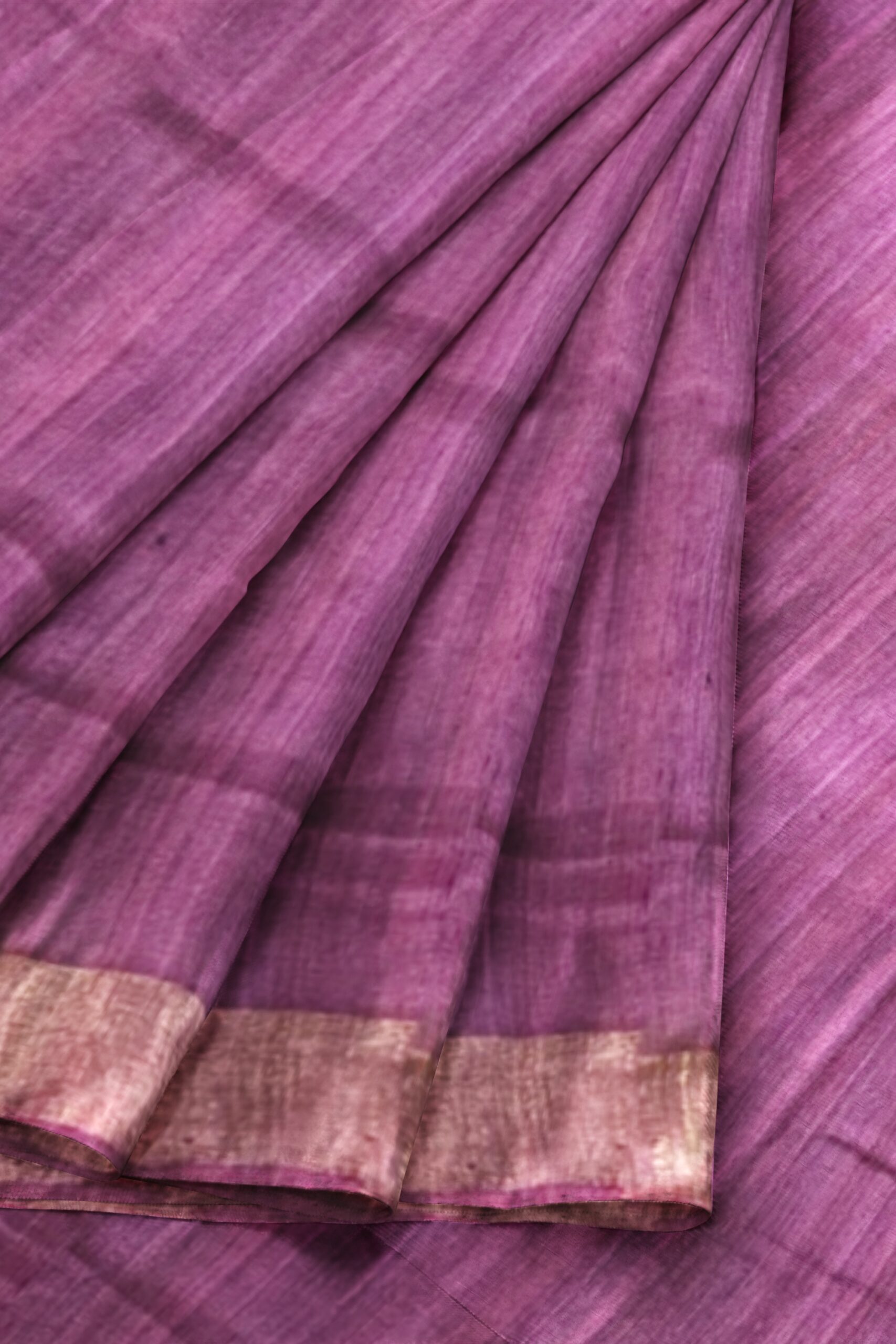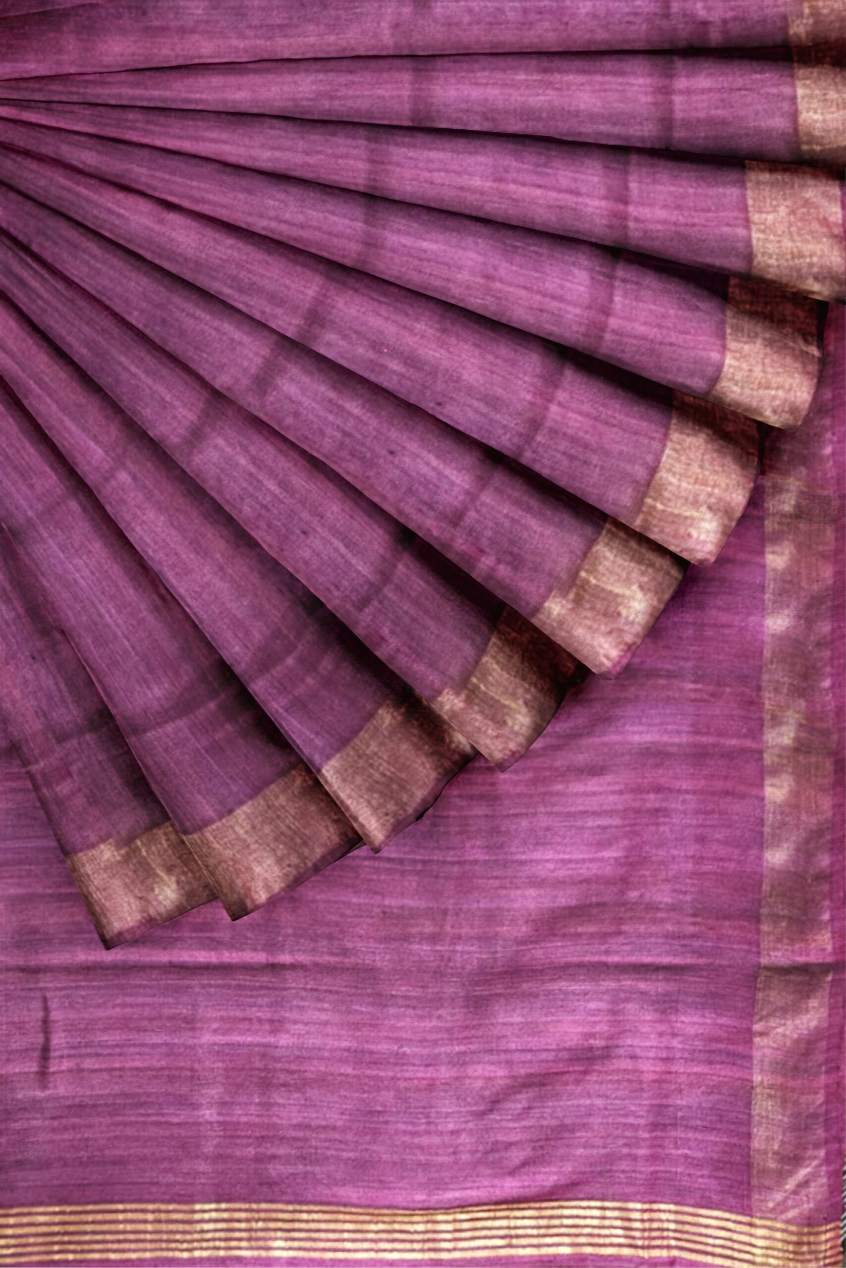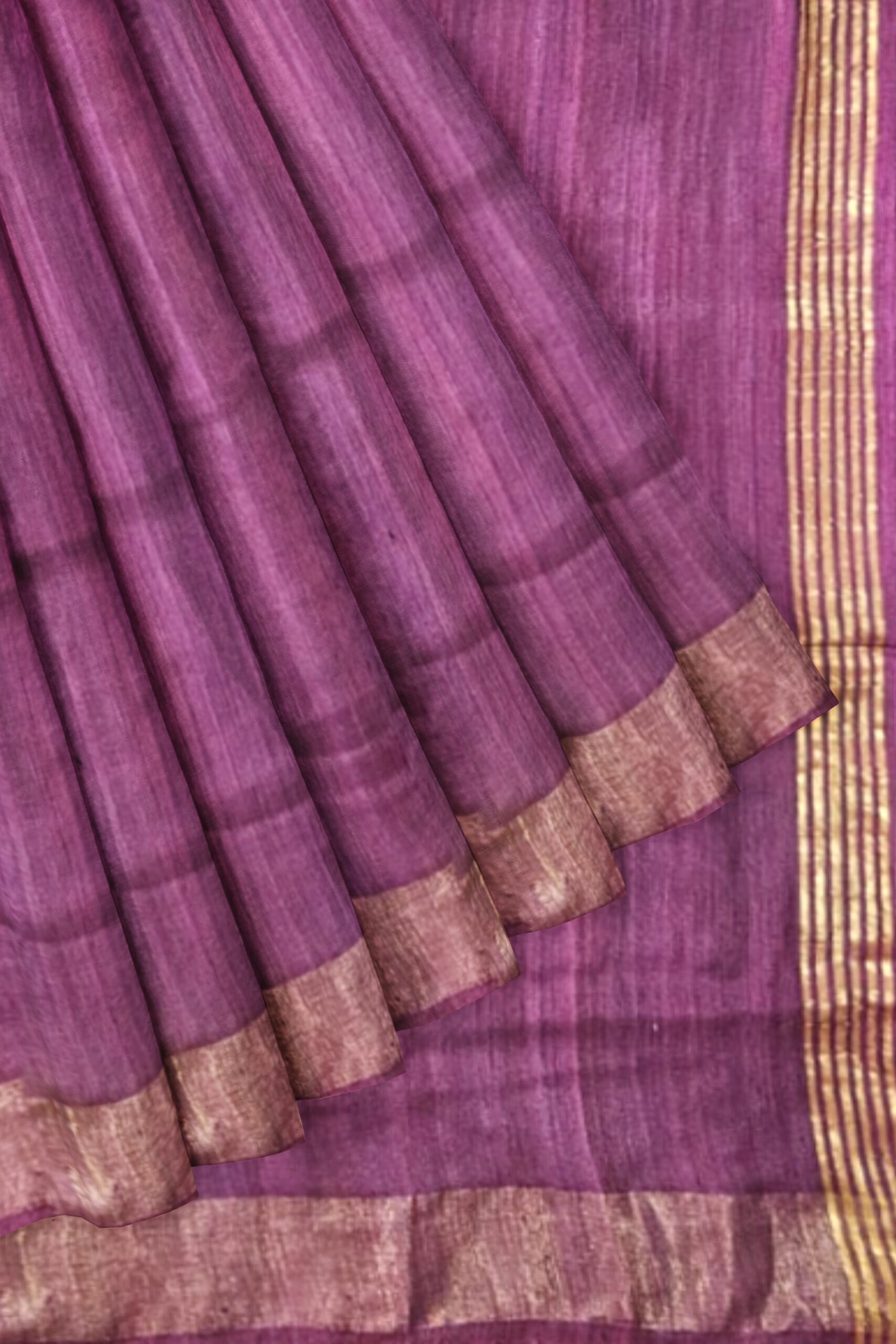 Elegant Purple Cotton Silk Saree with Golden Zari Border – Tussar Ghichacha sarees