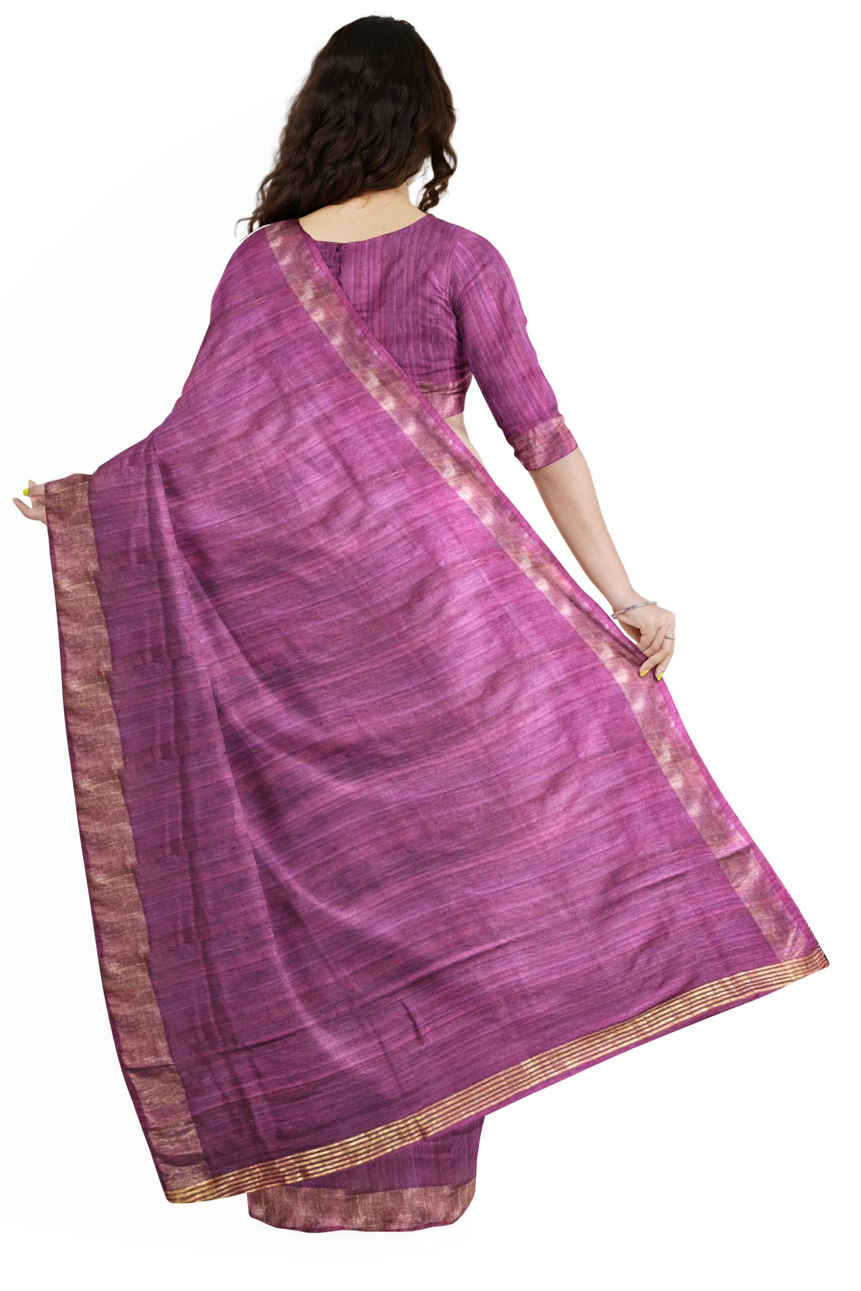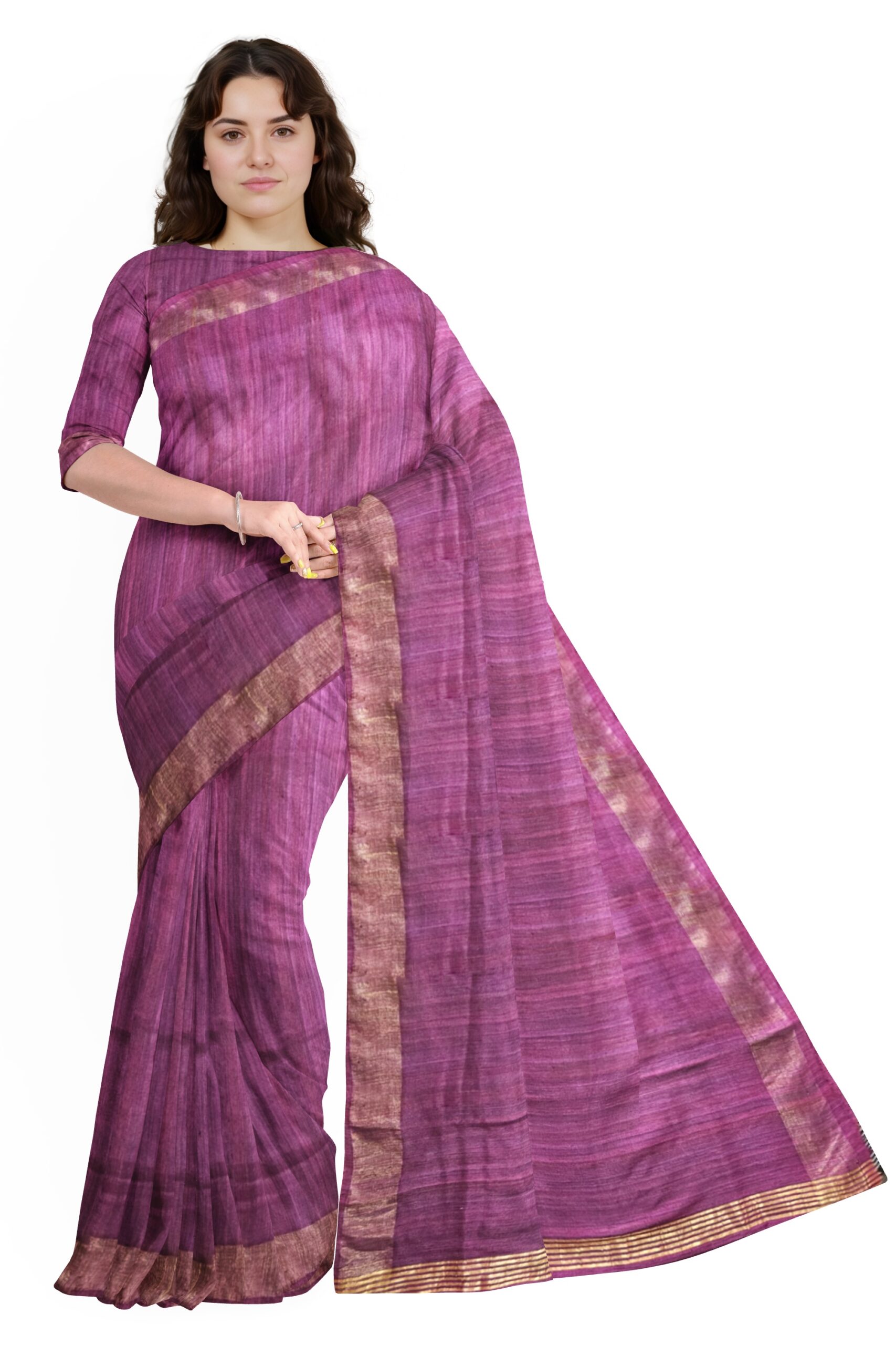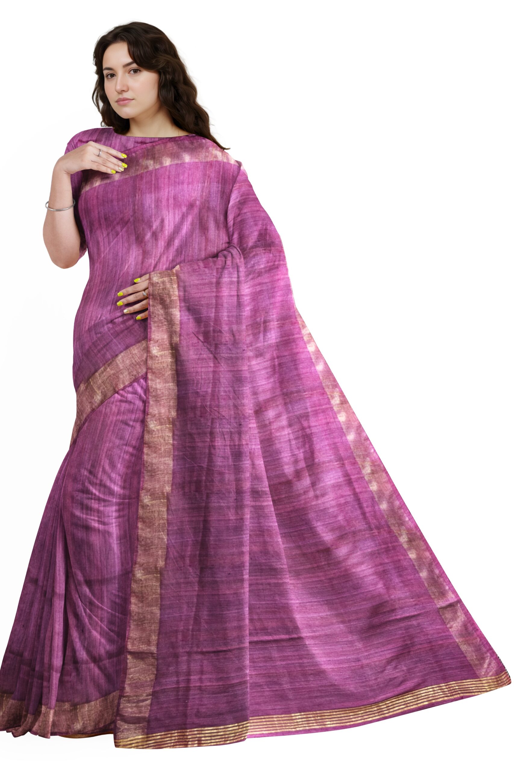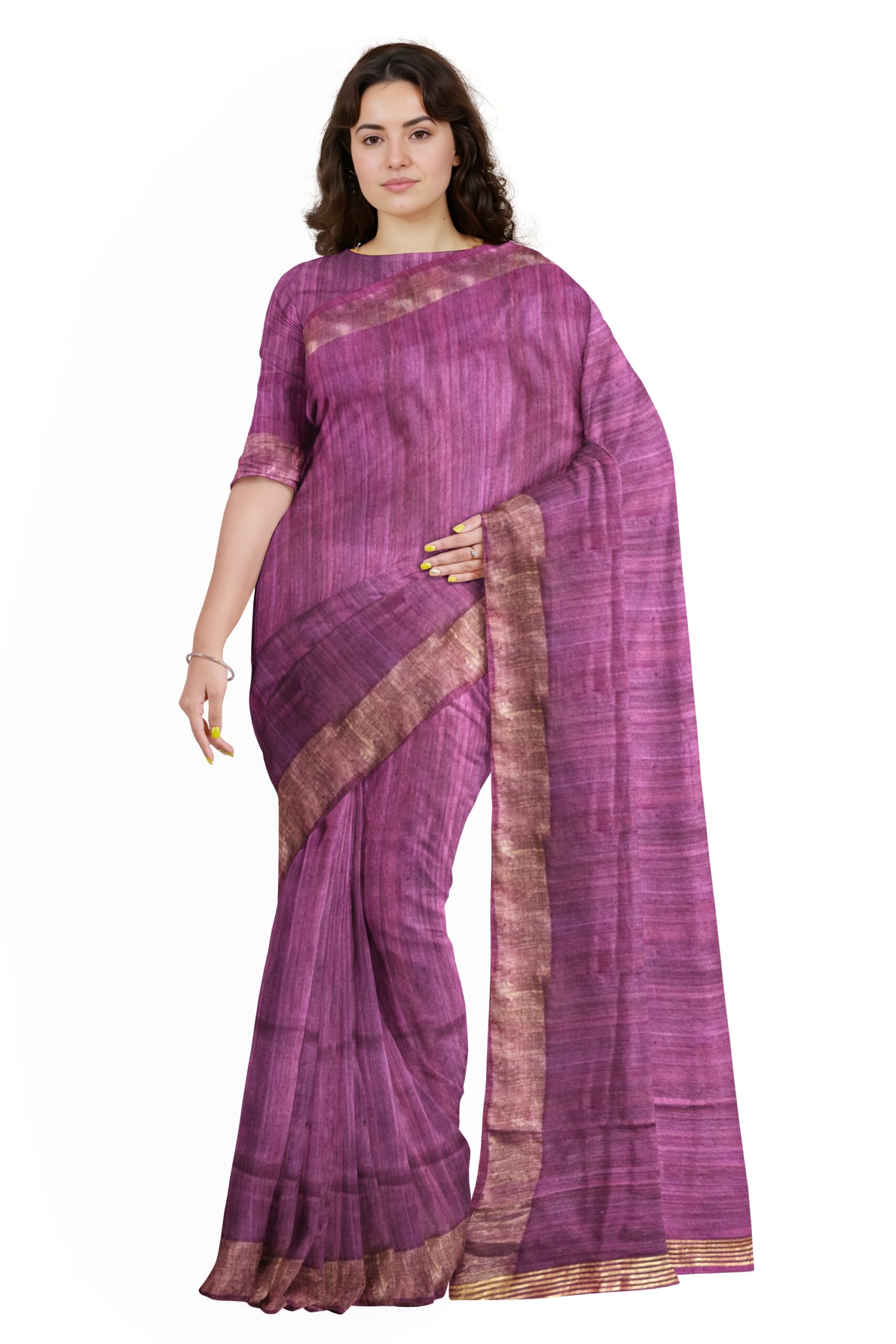 Elegant Purple Cotton Silk Saree with Golden Zari Border – Tussar Ghichacha sarees