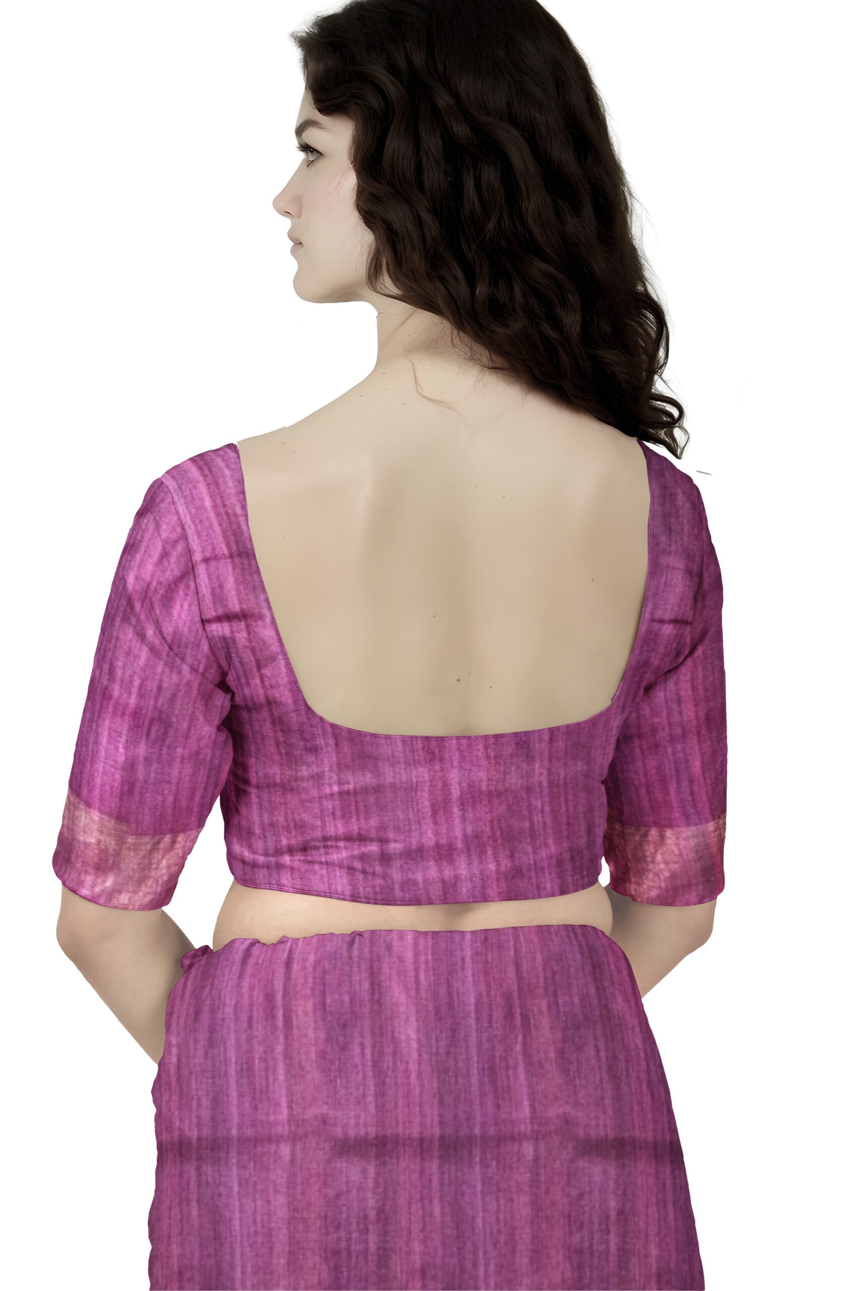 Bring understated elegance to your ethnic look with this rich purple cotton silk saree. The body displays a beautifully textured solid weave, enhanced with a subtle shine. The soft gold zari border and pallu add a classic festive finish without overpowering the minimal design. This saree effortlessly blends tradition with everyday sophistication, making it ideal for formal gatherings, festive pujas, or office ethnic days. The light and breathable fabric ensures all-day comfort with an elegant drape.